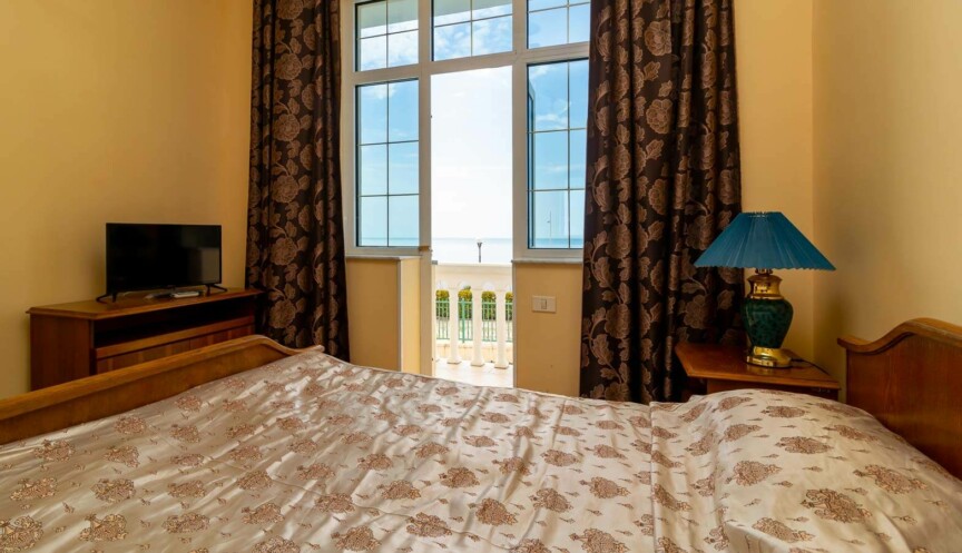 Однокомнатный номер. С балкона открывается фронтальный вид на Чёрное море. Номер расположен на 2 этаже.